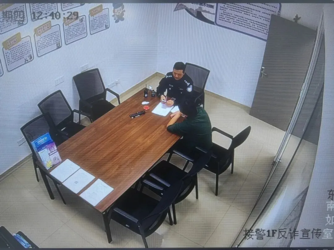 4月9日上午11时30分许,东陈派出所接到反诈中心预警指令,称辖区内53岁的冒阿姨可能正遭遇电信网络诈骗。民警张涛涛迅速上门劝阻。