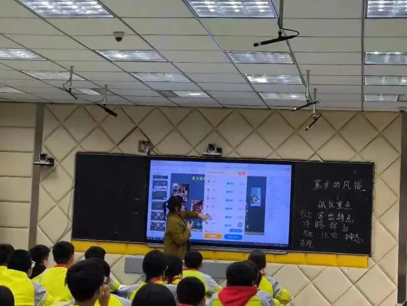 本次公开课紧扣六年级语文第一单元 “民风民俗” 的人文主题与语文要素,以 “能借助 AI 评改建议修改习作,用‘有详略、借资料、融体验’的方法介绍一种风俗或书写参加风俗活动的经历” 为核心教学目标,同时将 “感受家乡风俗的文化内涵,增强传统文化认同感” 融入教学全过程。课堂伊始,王老师以 “家乡之旅” 为切入点,带领学生回顾上周完成并上传至 AI 班级管家的习作任务,用 “化身文字魔法师精雕细琢作品” 的生动比喻点燃学生的学习热情。随后,师生共同重温老舍先生《北京的春节》的写作手法,提炼出 “抓住重点详写” 的核心写作方法,通过播放趣味视频引导学生树立 “用文字传承民族文化” 的意识。在佳作分享环节,同学们踊跃展示自己的习作,从腊八粥的香甜软糯到贴福字的喜庆热闹,从端午粽的清香四溢到包饺子的温馨团圆,字里行间满是对家乡的深情眷恋,师生在评议中共同总结出详略得当、巧用修辞、融入感悟、调动五觉等实用写作技巧,并引导学生进行五分钟的初步自主修改。