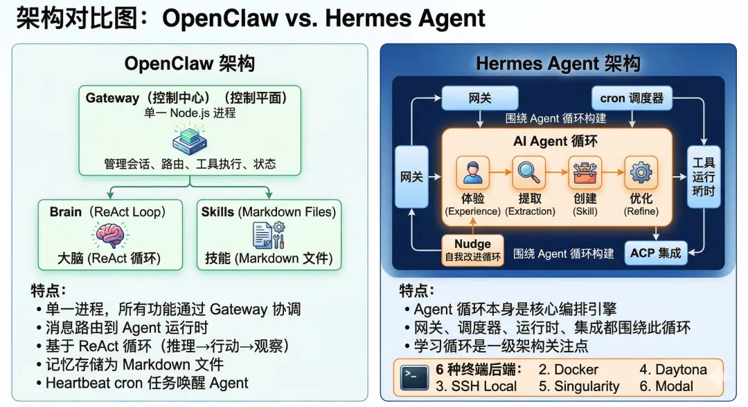 OpenClaw vs Hermes Agent:核心差异对比