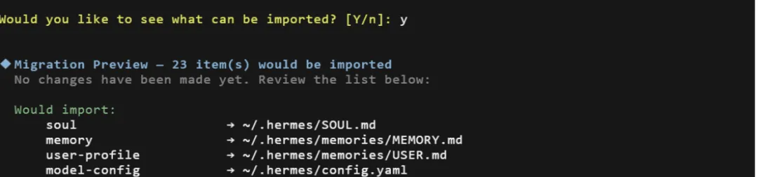 # 预览迁移(推荐先预览)hermes claw migrate --dry-run# 执行迁移hermes claw migrate# 完整迁移(包括 API keys,跳过确认)hermes claw migrate --preset full --yes两种方式的区别