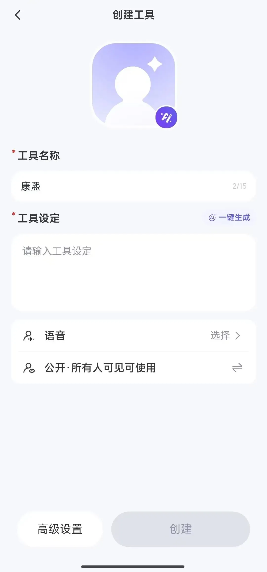 可以自定义你所创建的智能体的特征,越详细越好。如果觉得这样很麻烦,也可以选择让AI一键生成,只需轻点【一键生成】,就能快速生成描述。