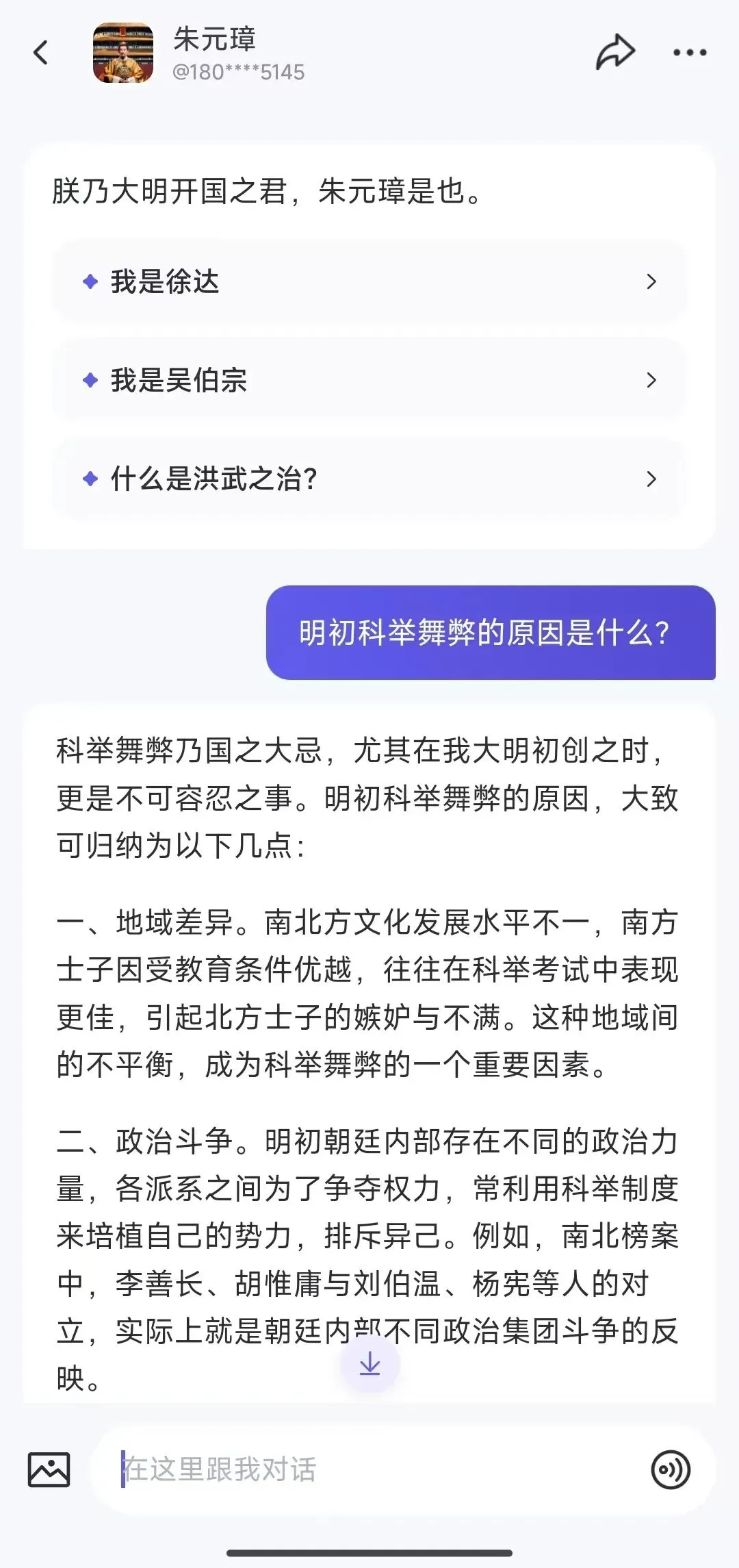 这是我们创建的朱元璋智能体(仅供参考),大家可以点击链接进行体验: