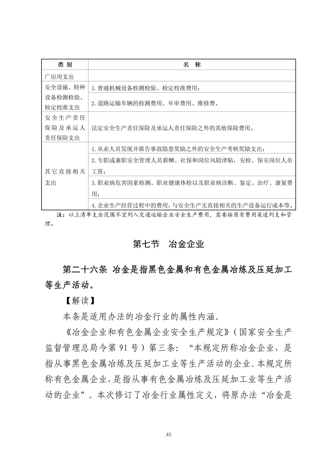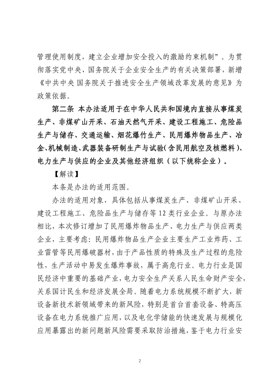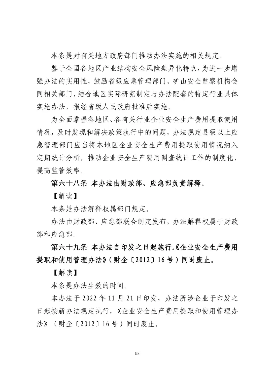 为贯彻安全发展新理念,推动企业落实主体责任,加强企业安全生产投入,根据《中华人民共和国安全生产法》等法律法规,财政部、应急管理部印发了《企业安全生产费用提取和使用管理办法》(财资〔2022〕136号)(以下简称《办法》)。为便于相关行业企业和有关部门准确理解和把握《办法》,更好地发挥《办法》促进企业建立安全生产投入长效机制作用,现对《办法》条款进行解释说明。