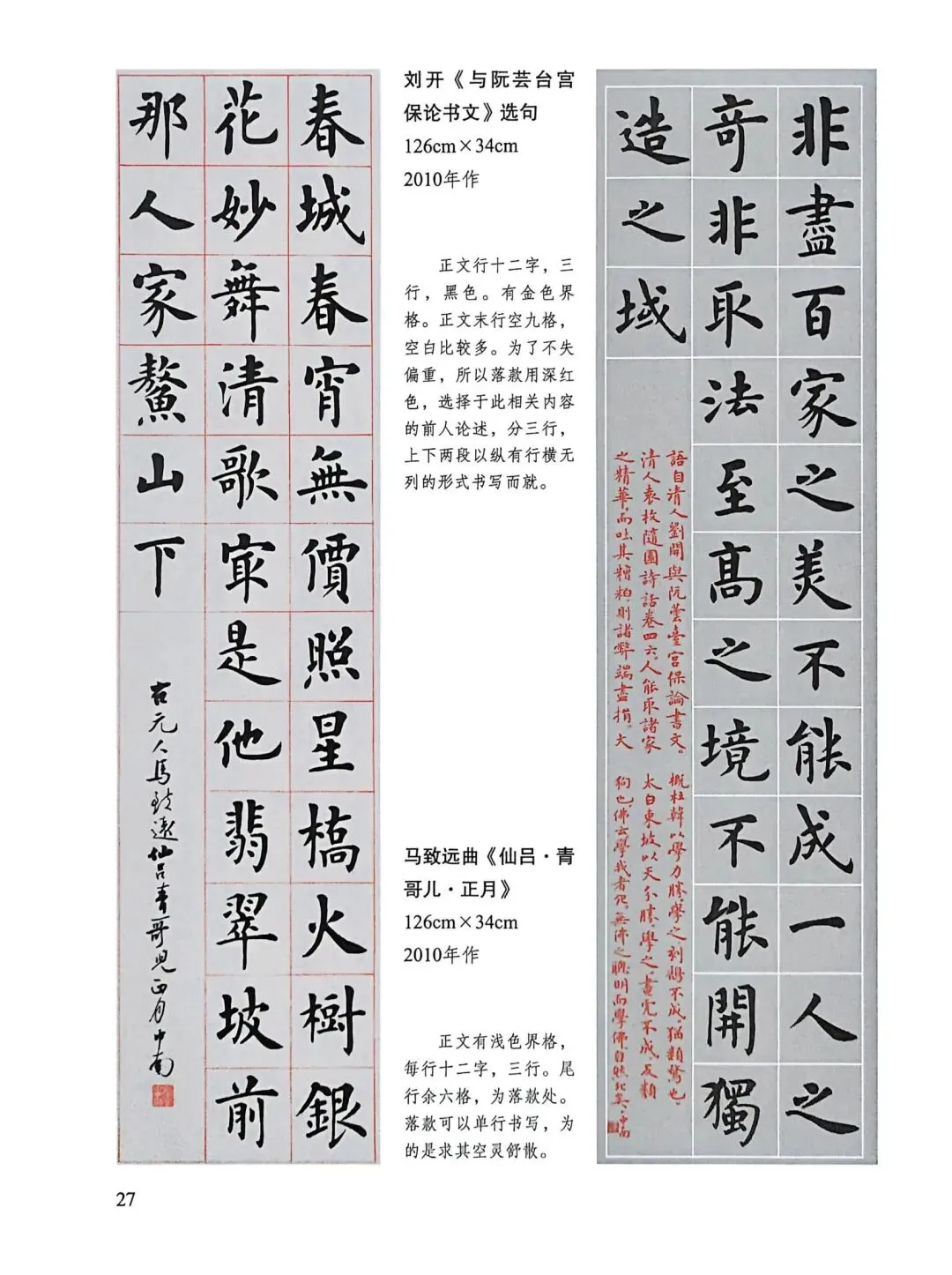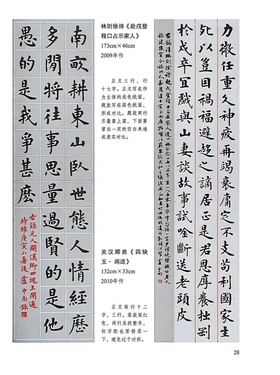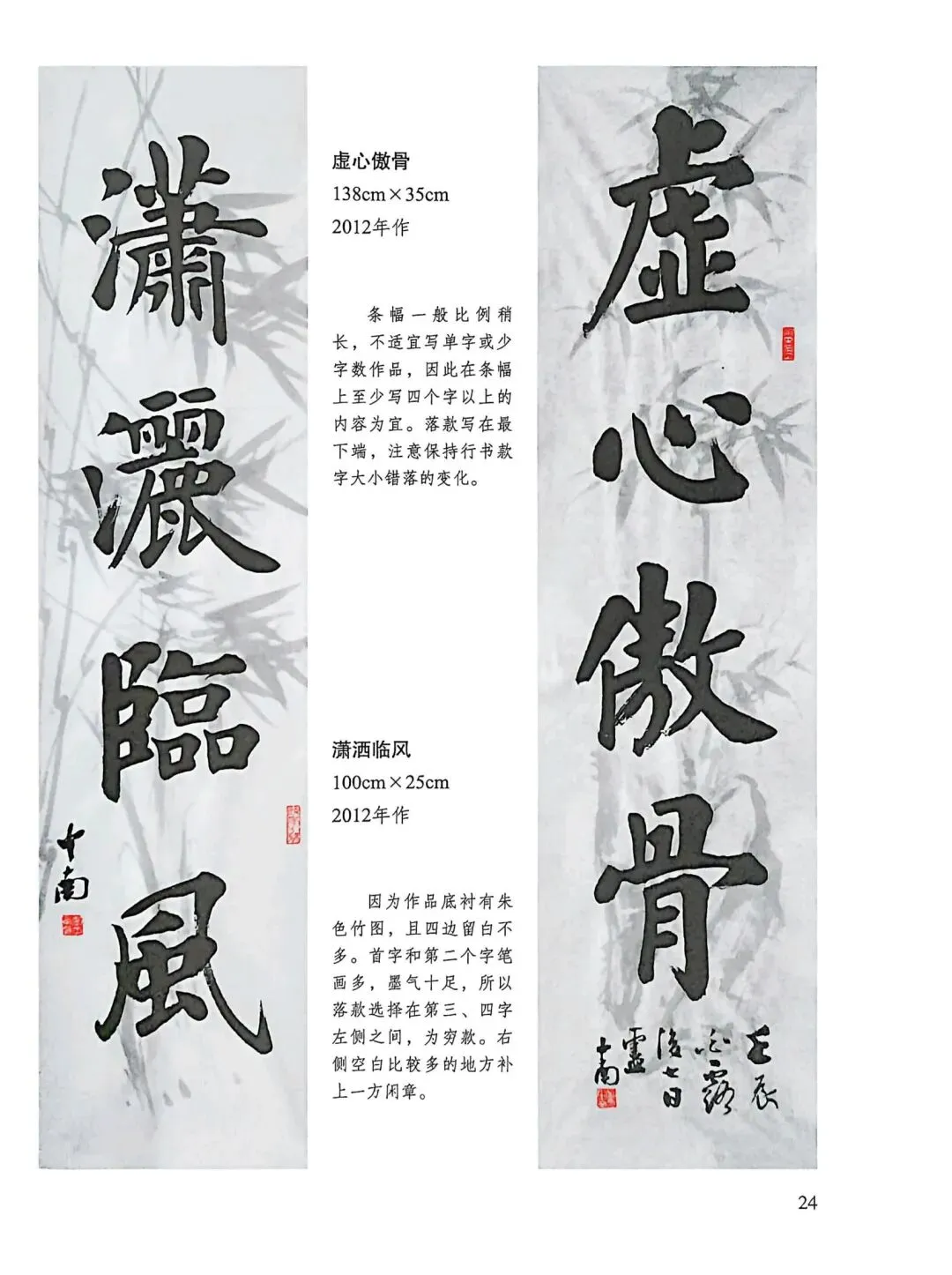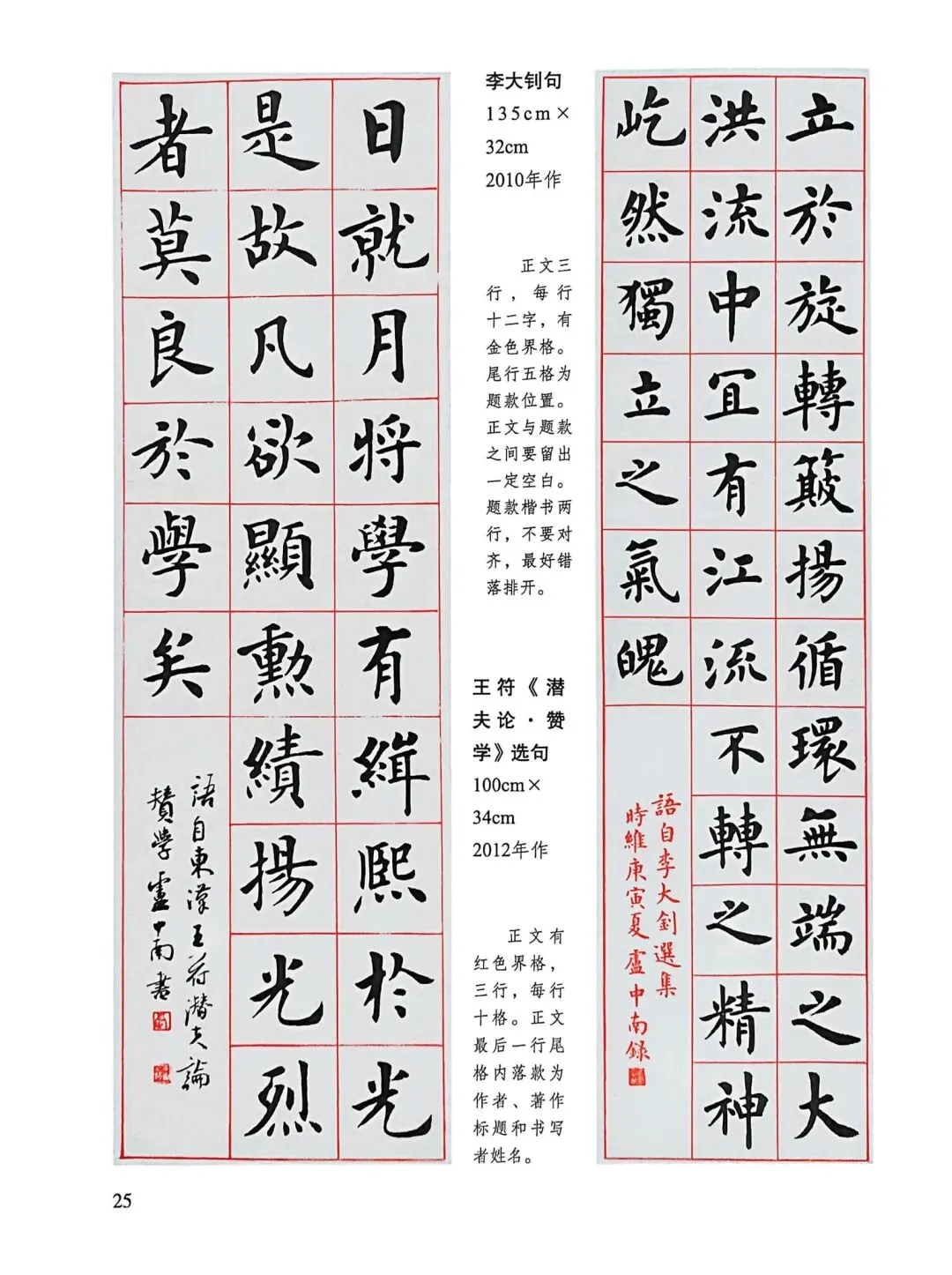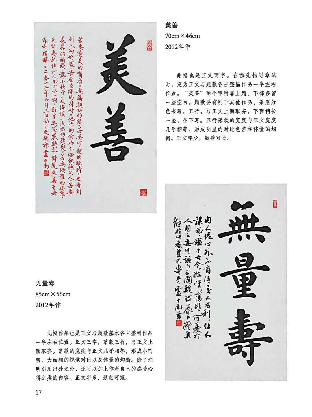本书珍贵之处在于,它绝非空洞理论。卢中南先生以其深厚的功力,亲自示范了从中堂、条幅、楹联,到手卷、扇面、册页等几乎所有传统形制的创作。书中所选内容更是博采经典,从文天祥《正气歌》的浩然长卷,到“敬事无旷”的精致扇面;从“充海阔天宽之量”的庄严楹联,到司空图《诗品》的黑底白字斗方……每一幅都是章法布局与文本内容完美结合的范例。