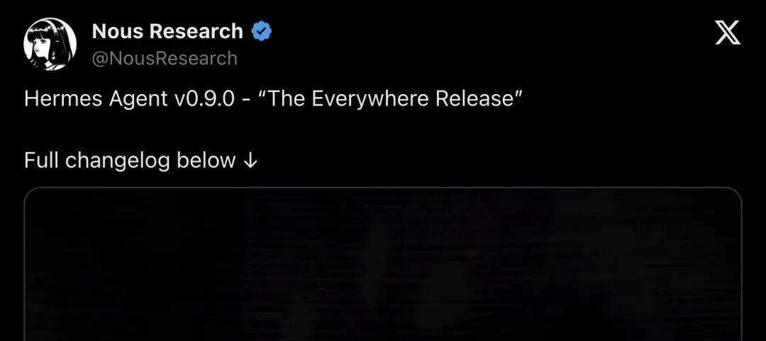 北京时间2026年4月14日凌晨,Nous Research官方X账号发出一条极简推文: