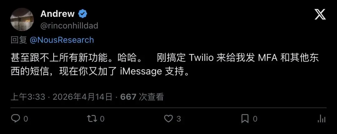 这不是问题,这是旁证:Hermes的工程推进速度,已经快到营销层跟不上了。