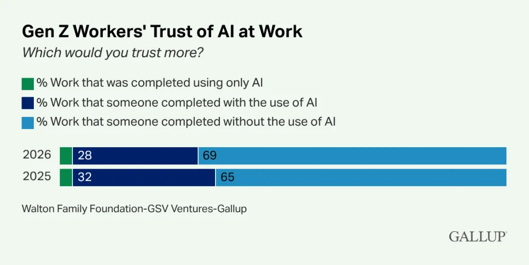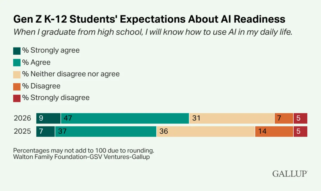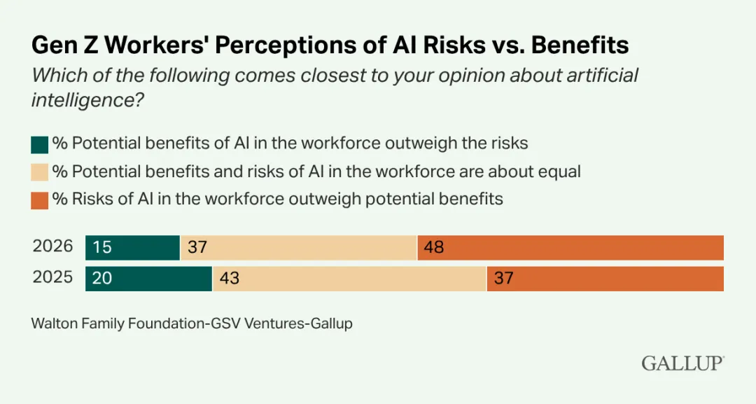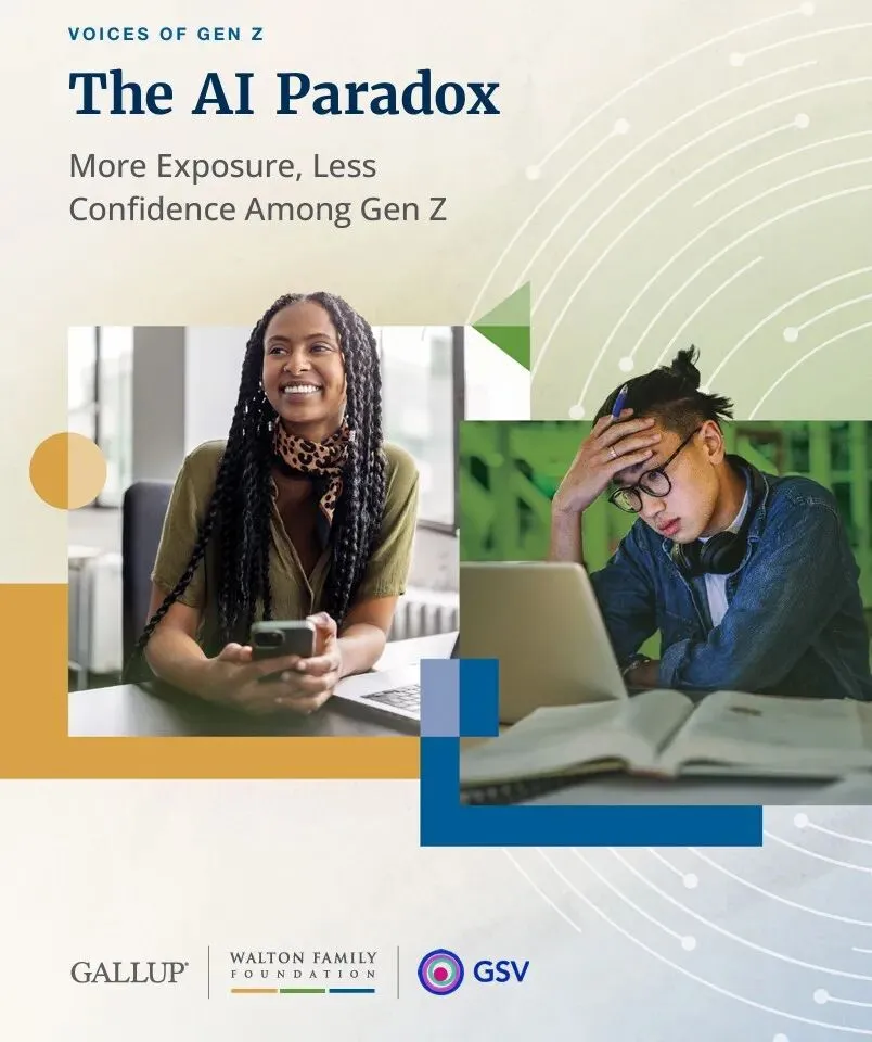 2026年4月9日,盖洛普联合沃尔顿家族基金会(Walton Family Foundation)与GSV Ventures发布《Z世代之声:AI悖论》(Voices of GEN Z:The AI Paradox)报告。