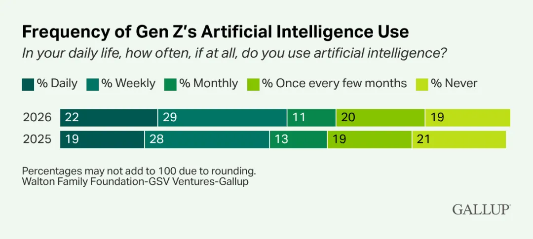 1. Z世代的AI使用率与2025年相比基本没有变化
