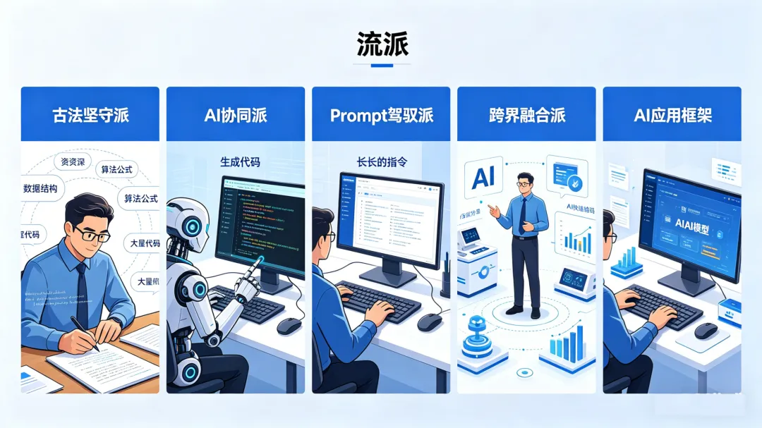 那么,对照这五种流派,你是坚守古法的匠人,还是协同AI的高效者?是驾驭Prompt的指挥官,还是跨界破局的先行者?或是躬身实干的AI建设者?无论答案是什么,只要保持进化,每一条路都能走出属于自己的精彩。