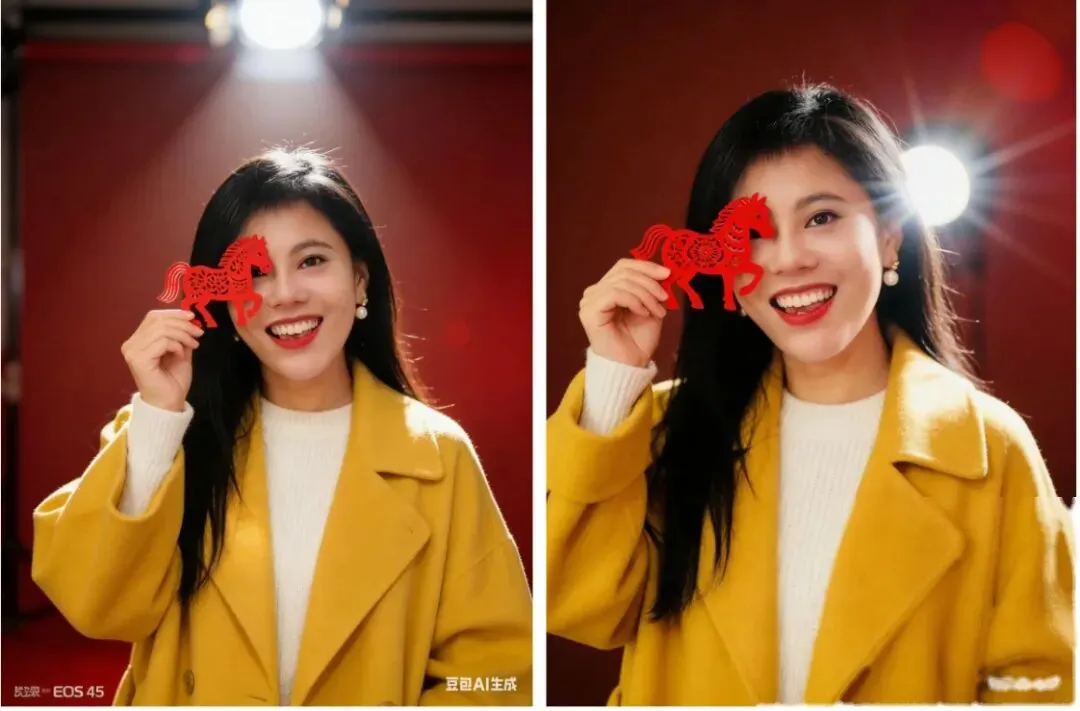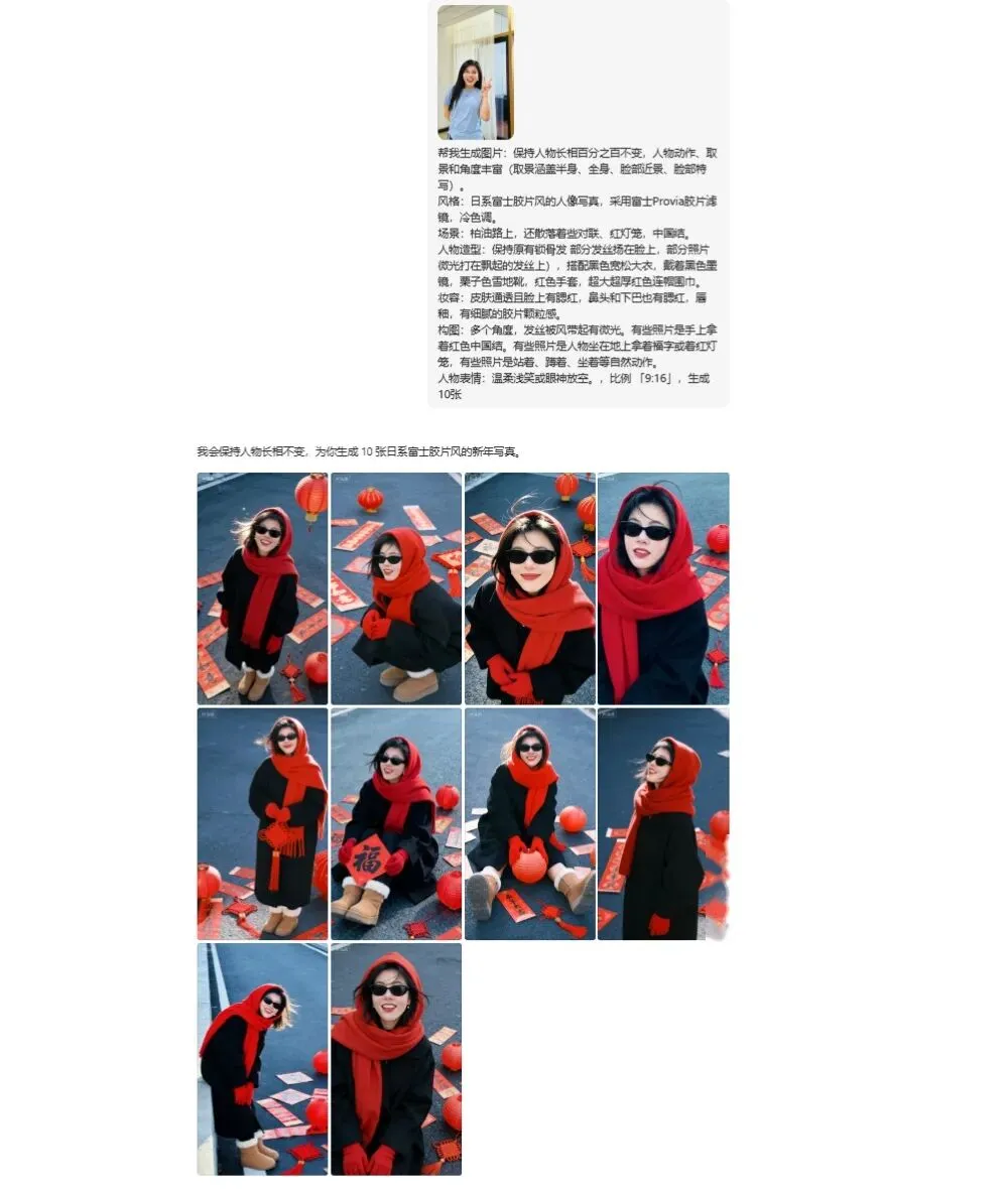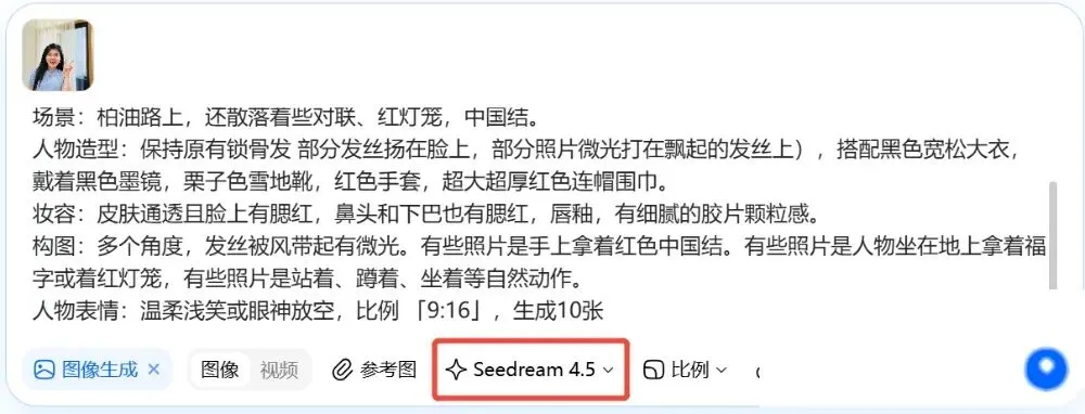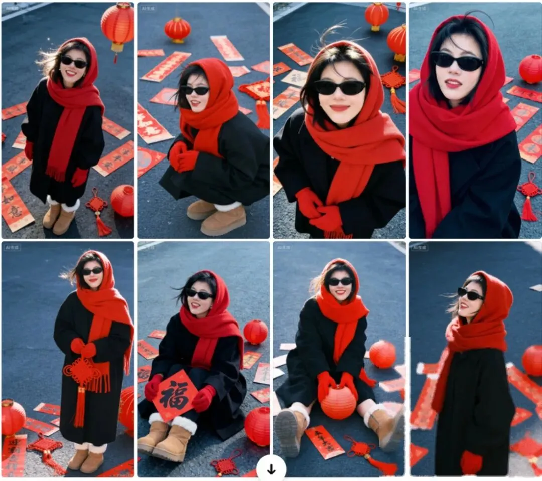 其实有个更简单的办法,豆包AI,两分钟,一张普通自拍,直接变春节写真大片。