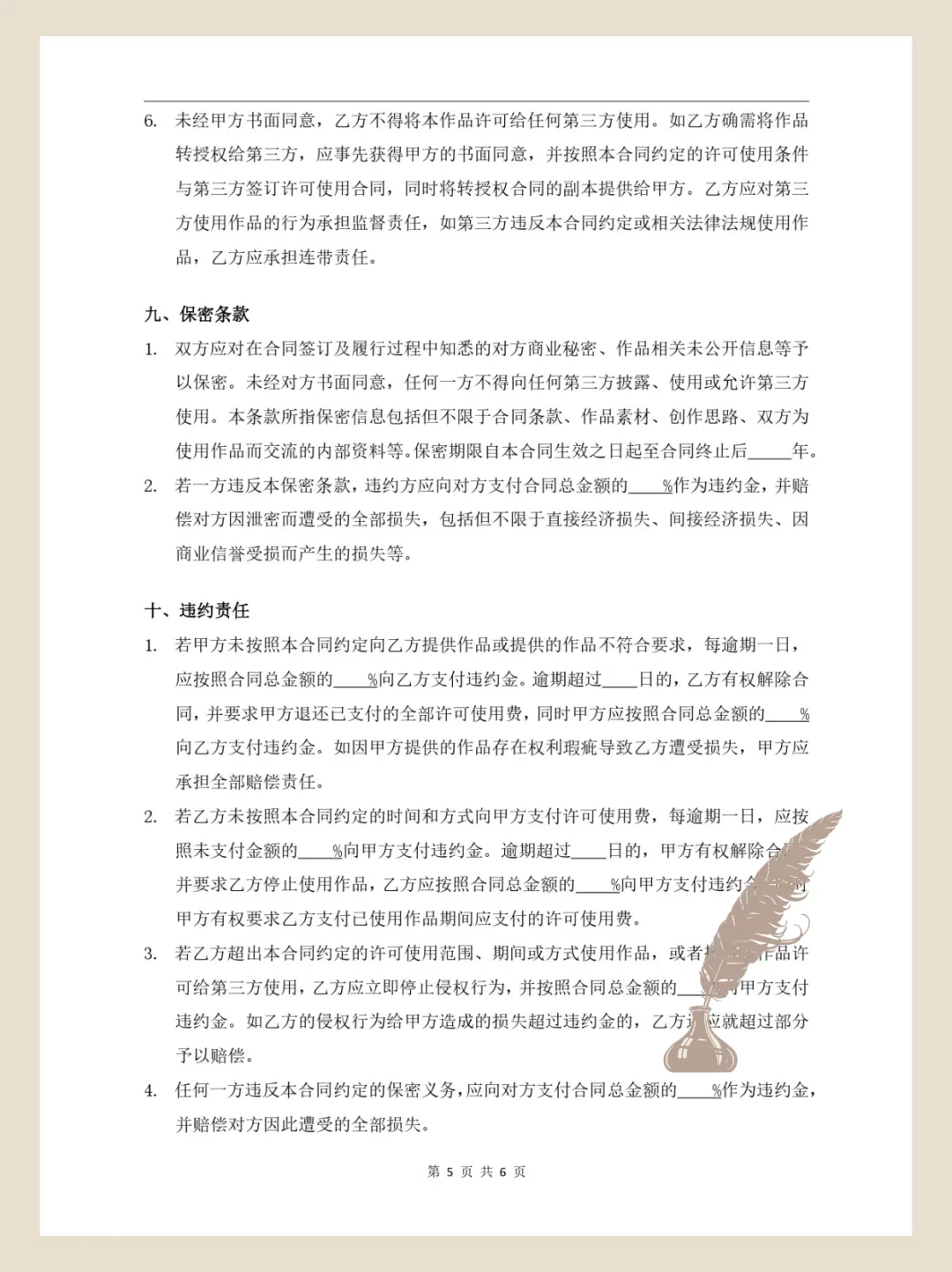4、本平台保留对合同模板内容进行修改、更新的权利,且不另行通知用户。用户应及时关注模板的更新状态,使用最新版本的模板。