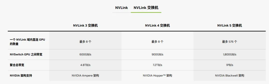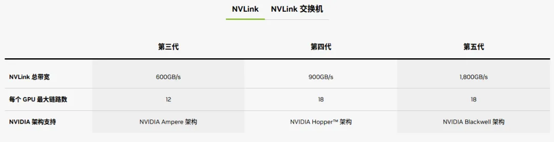NVLink是一种纵向扩展互联(scale-up)技术,在节点内部提供GPU到GPU高带宽的通信链路,且支持直接点到点连接,具有比传统PCIe更高的传输速度和更低的时延,显著优化了模型训练、模型推理等。