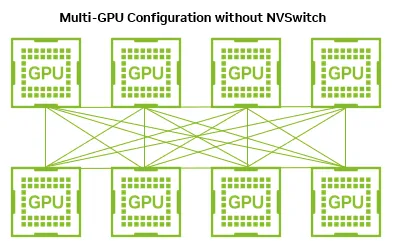 如果没有使用NVSwitch,直接通过NVLink点对点连接,每条链路仅128GB/s: