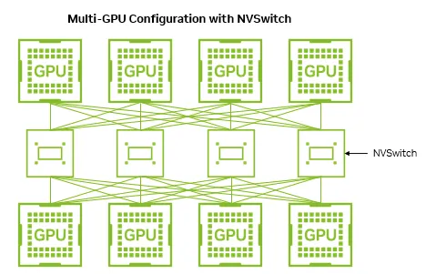 由于NVLink技术不能将节点内的GPU做到全互联,所以NVIDIA在2018年发布了NVSwitch,通过NVSwitch实现NVLink的全连接。