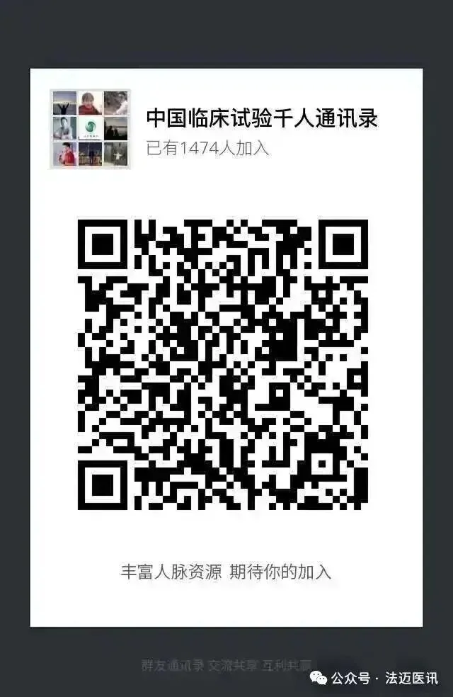 欢迎加入1474+人的中国临床试验千人通讯录
