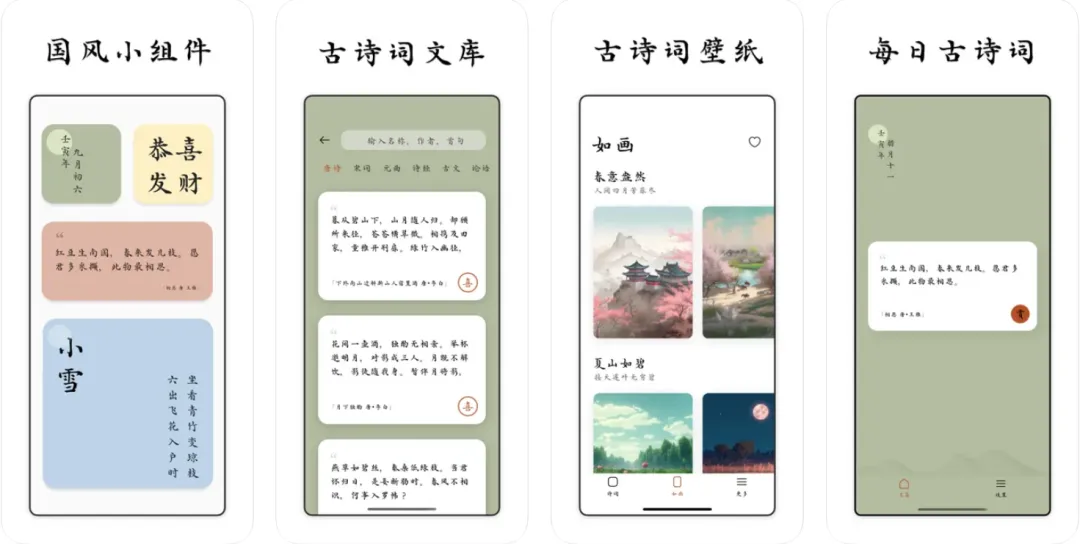 支持诗词、节气、成语等内容的小组件,传统文化一个不落,直接在桌面上就能学。