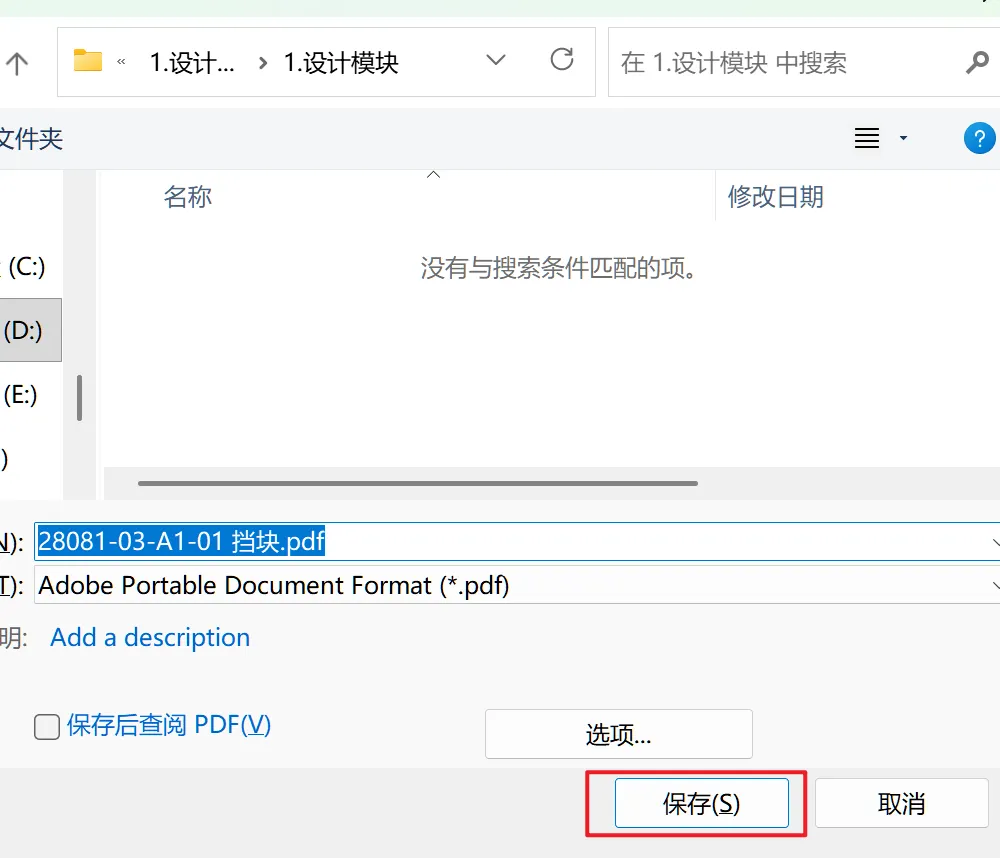 进行正常另存为操作,将工程图另存为PDF,点击保存