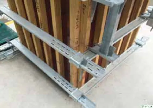 组件怯模板: 主次背楞采用薄壁型方钢、洞口阴阳角锁具