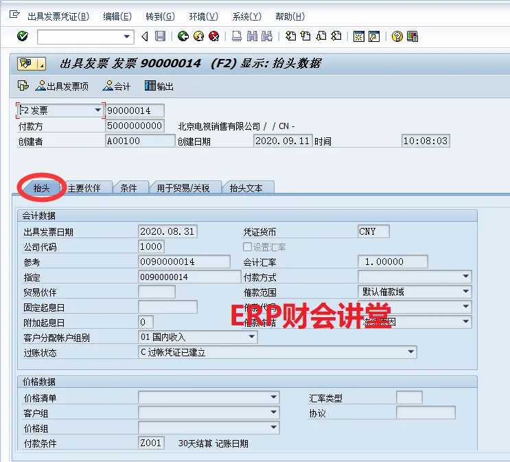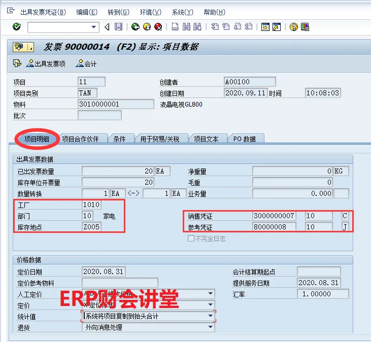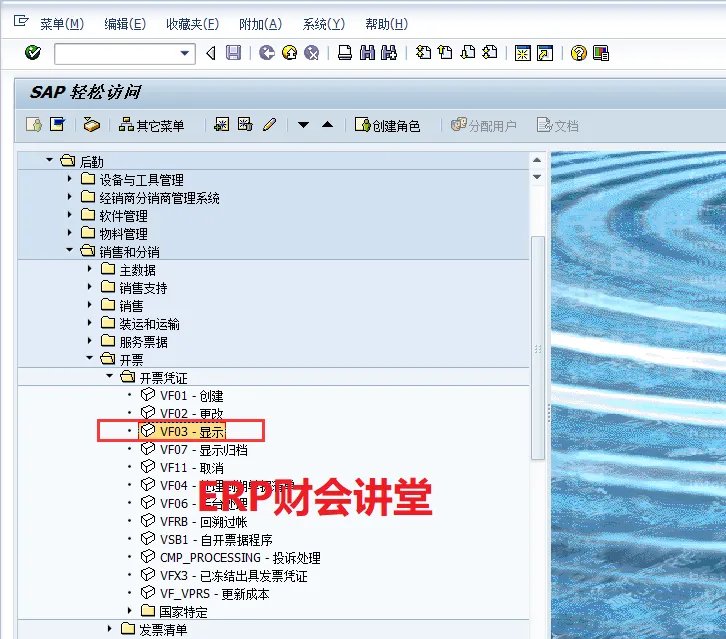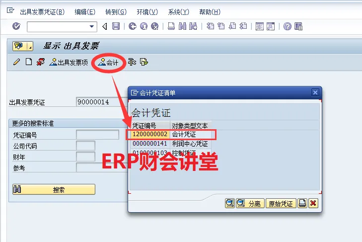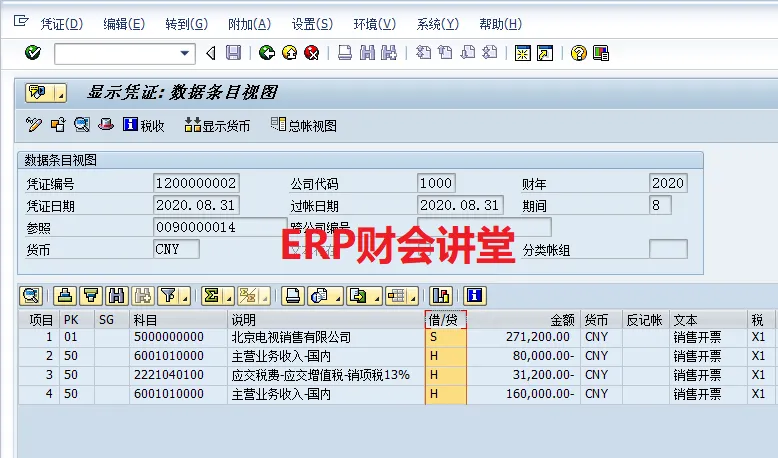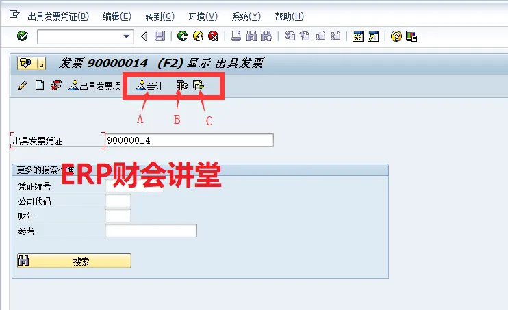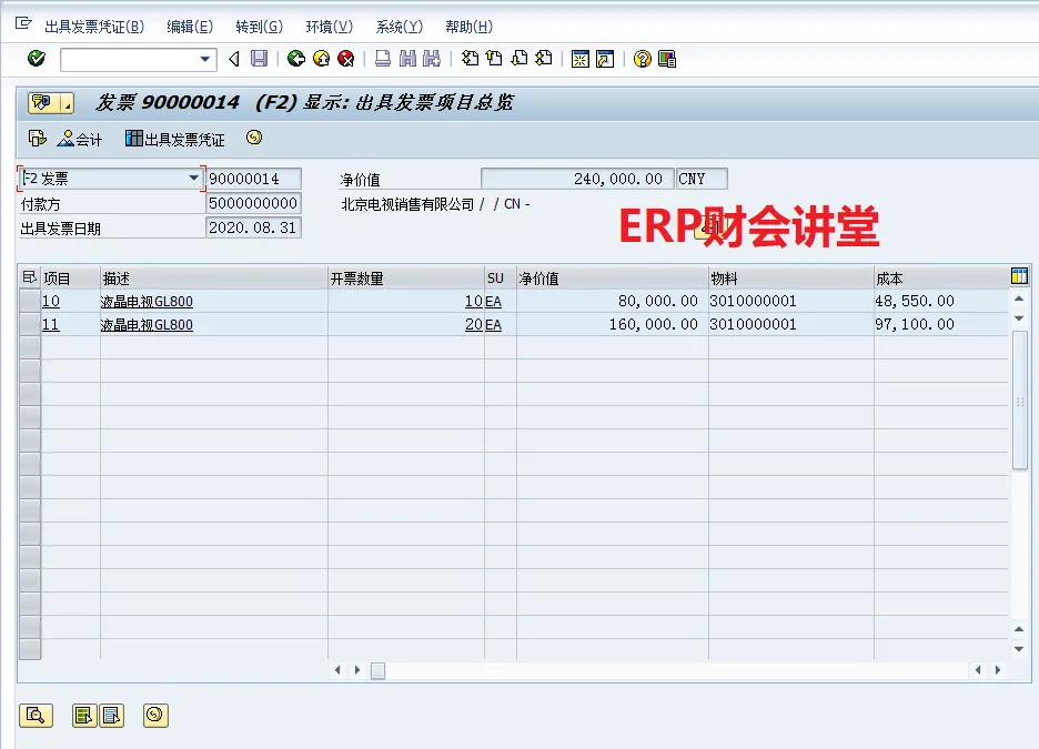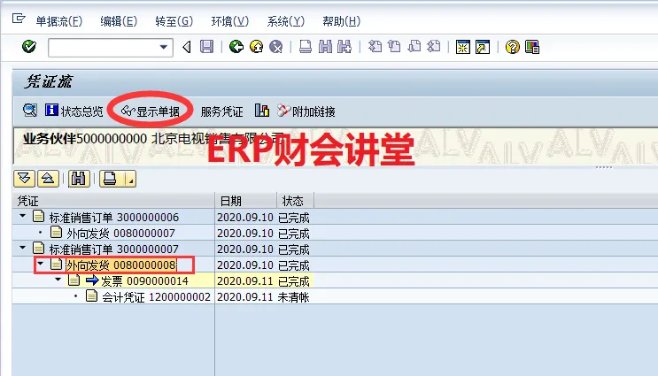 SAP软件 销售发票概览特别申明:本文转载自Woffee老师原创作品。Woffee老师:18年SAP咨询经验,四大背景,ERP财会讲堂创始人,《SAP财务实操课程》原创作者,微信S_FinanceSAP中,完整的销售流程包含订单、交货、开票、收款4大环节,其中“开票”指的是开具增值税发票之前,需要在SAP中出具发票,生成系统发票,通过系统发票生成应收账款。作为财务人员,我们要熟悉系统发票,能够根据发票进行关联查询,如对应的会计凭证、销售订单等。这一节,我们介绍销售发票,以及相关的信息查询。选择图标B可以分析发票的收入科目,当发现销售收入科目不正确时,通过此功能可以分析系统是如何取到收入科目的,以便VKOA做进一步的维护。选中凭证流中的单据,点击“显示凭证”即可查看对应的单据,例如查看外向交货单80000008如下。