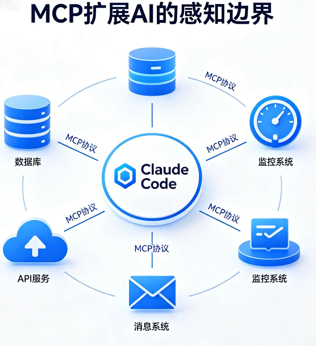 MCP(Model Context Protocol)工具是通过MCP Server注册到Claude Code中的外部工具。你可以把MCP Server理解为一个"翻译官"——它把外部系统的能力翻译成Claude Code能理解的工具格式。