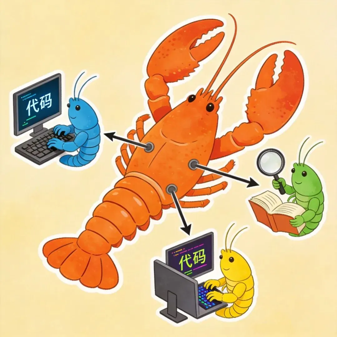这是 OpenClaw 最让我惊喜的功能——子 Agent。简单说就是你可以创建一个"主 AI"和多个"子 AI",主 AI 负责协调思考,子 AI 负责具体执行。省钱的地方在这:主 AI 用好点的模型(比如 Claude),子 AI 用便宜的模型(比如 Haiku)。主 AI 把任务拆解分发,子 AI 各自干活,整体成本降下来,效率反而上去了。子 AI 用 GPT-4o-mini,负责执行搜索、写代码、发消息这些重复性工作这样主 AI 不会被琐事干扰,专注于真正需要动脑子的部分。