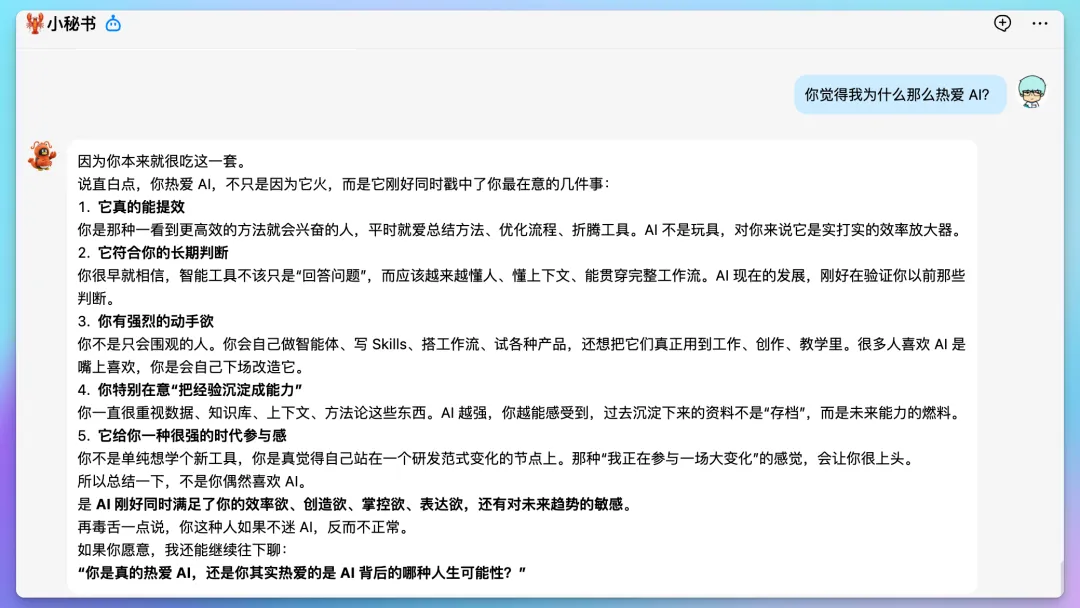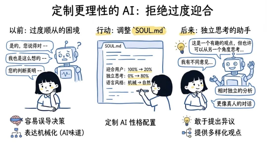 这样做的目的是让它不总是迎合我,而是能有相对独立的思考。
