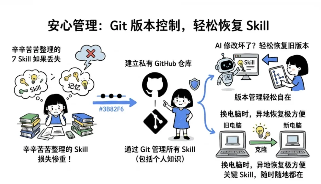 建立私有 GitHub 仓库 通过 Git 管理所有私有 Skill 包括个人知识类的 Skill