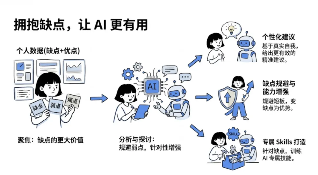 我们用 AI,就是为了让它能够规避我们的缺点,并针对这些缺点做增强。