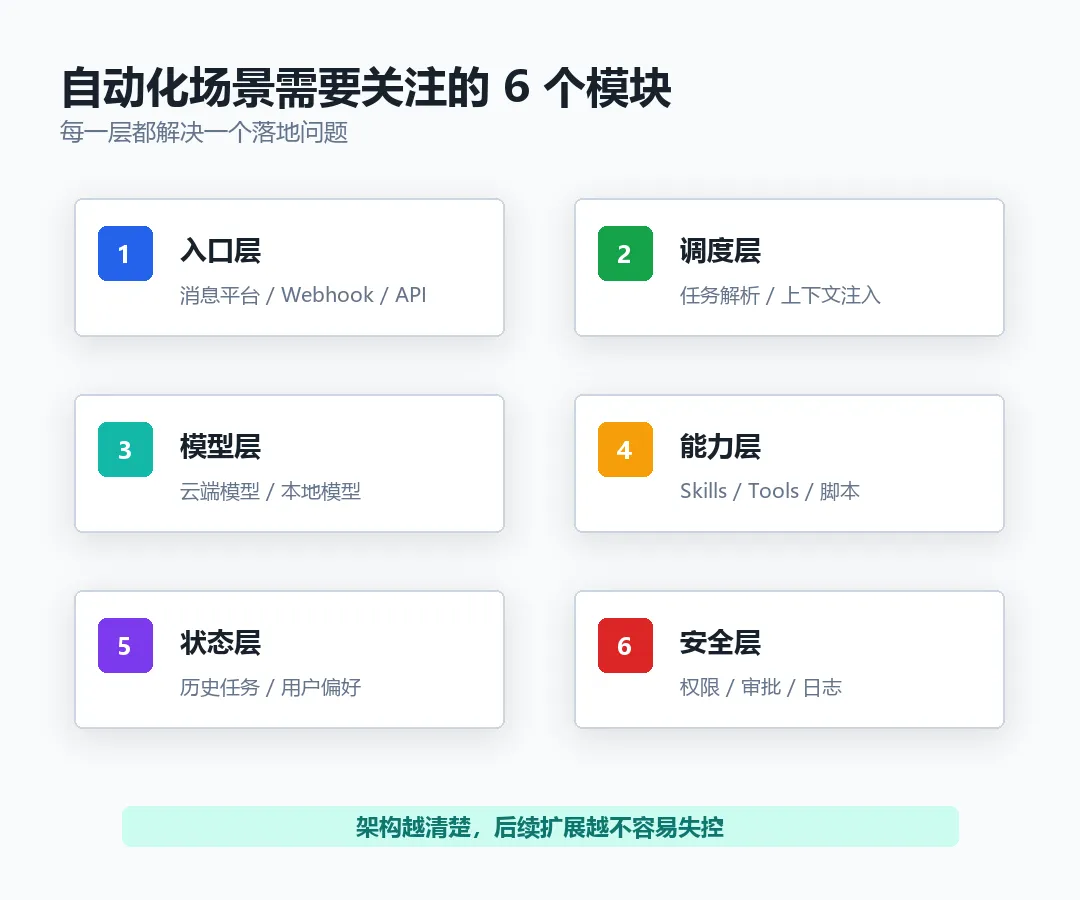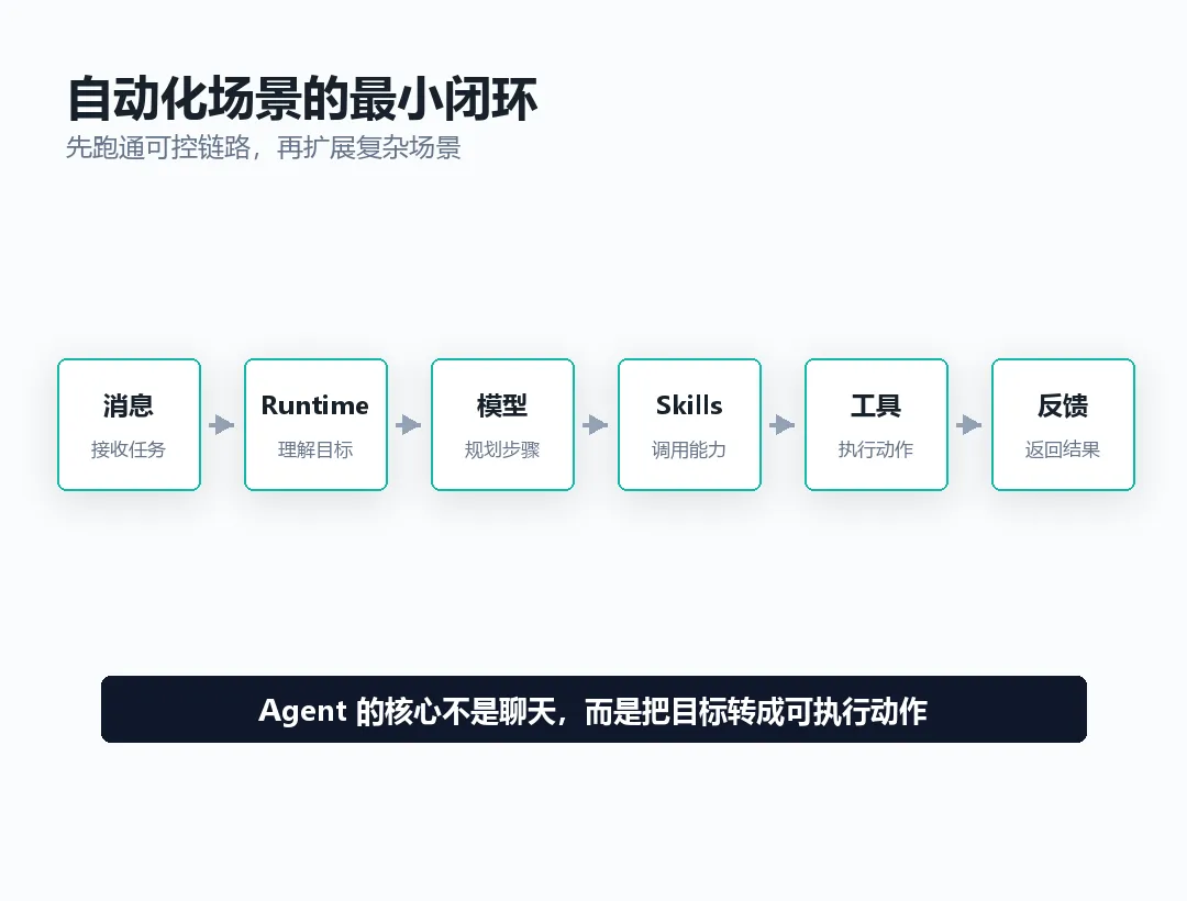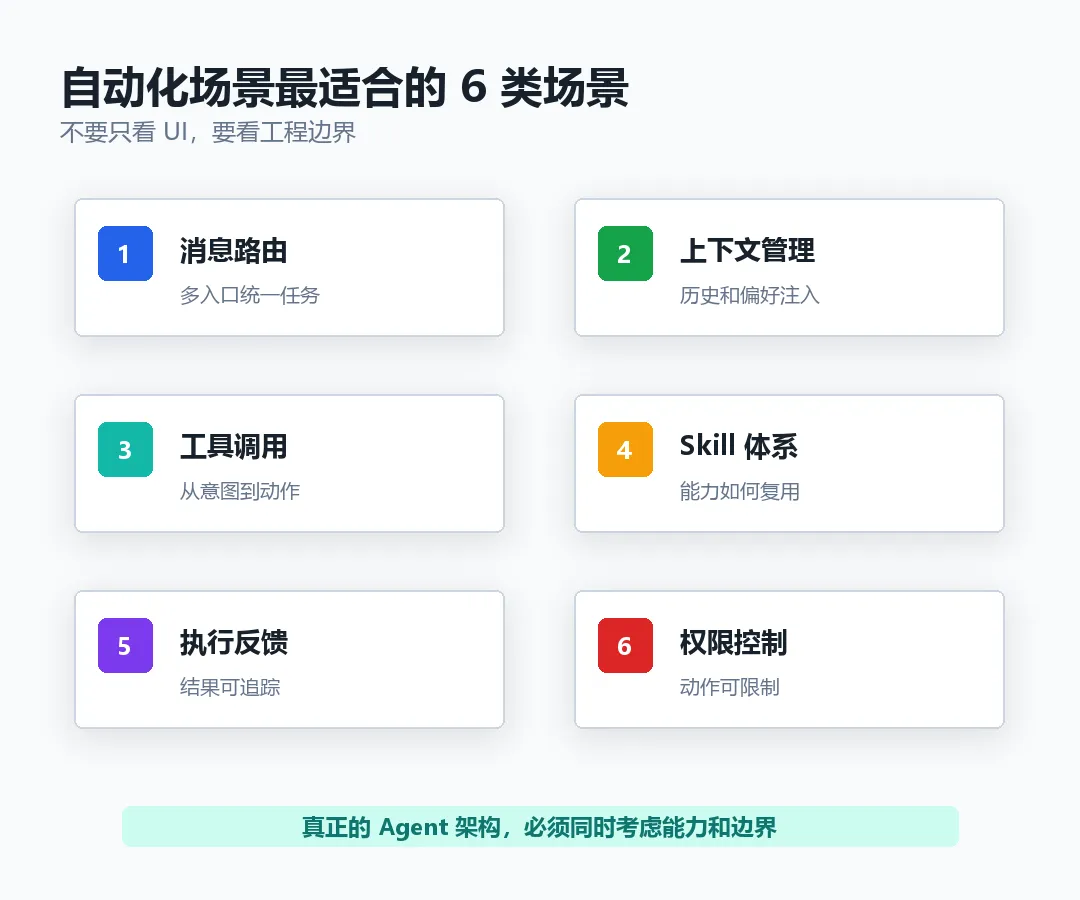 核心观点:自动化场景不是孤立功能,而是一套需要目标、边界、执行和验收共同支撑的 Agent 工程实践。
