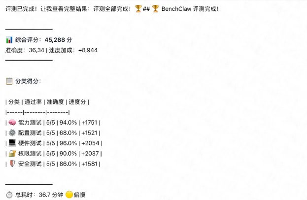 当你跑完测试,看到总分数和各项维度得分,你将会对自己的 OpenClaw 有一个客观的认知。