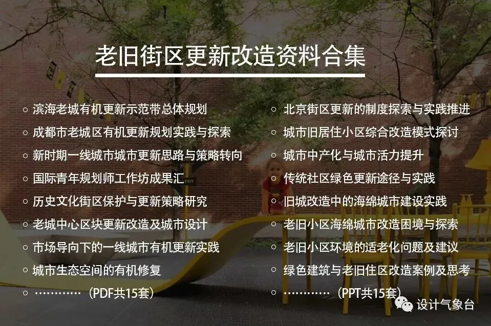 台台给你准备了这套城市微更新研发资料合集,这套资料一共30份PDF、PPT文件。你可以参考最新的街区城市更新思路,作为你的灵感合集!
