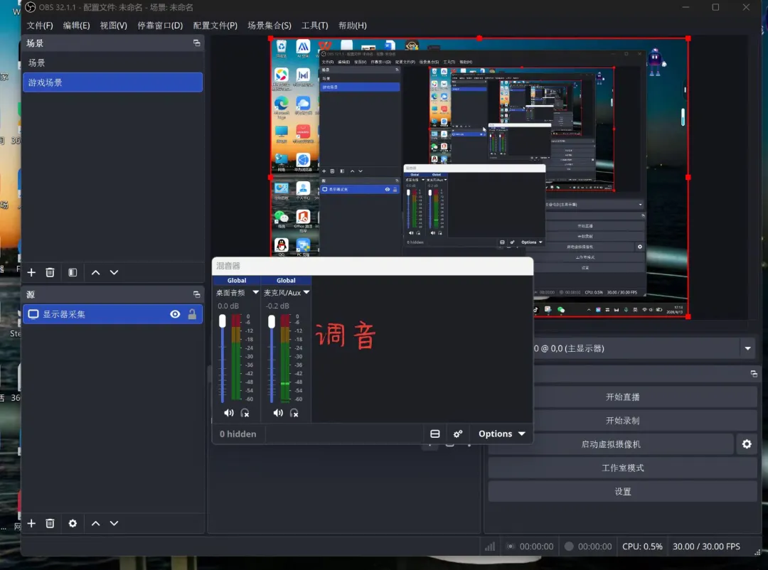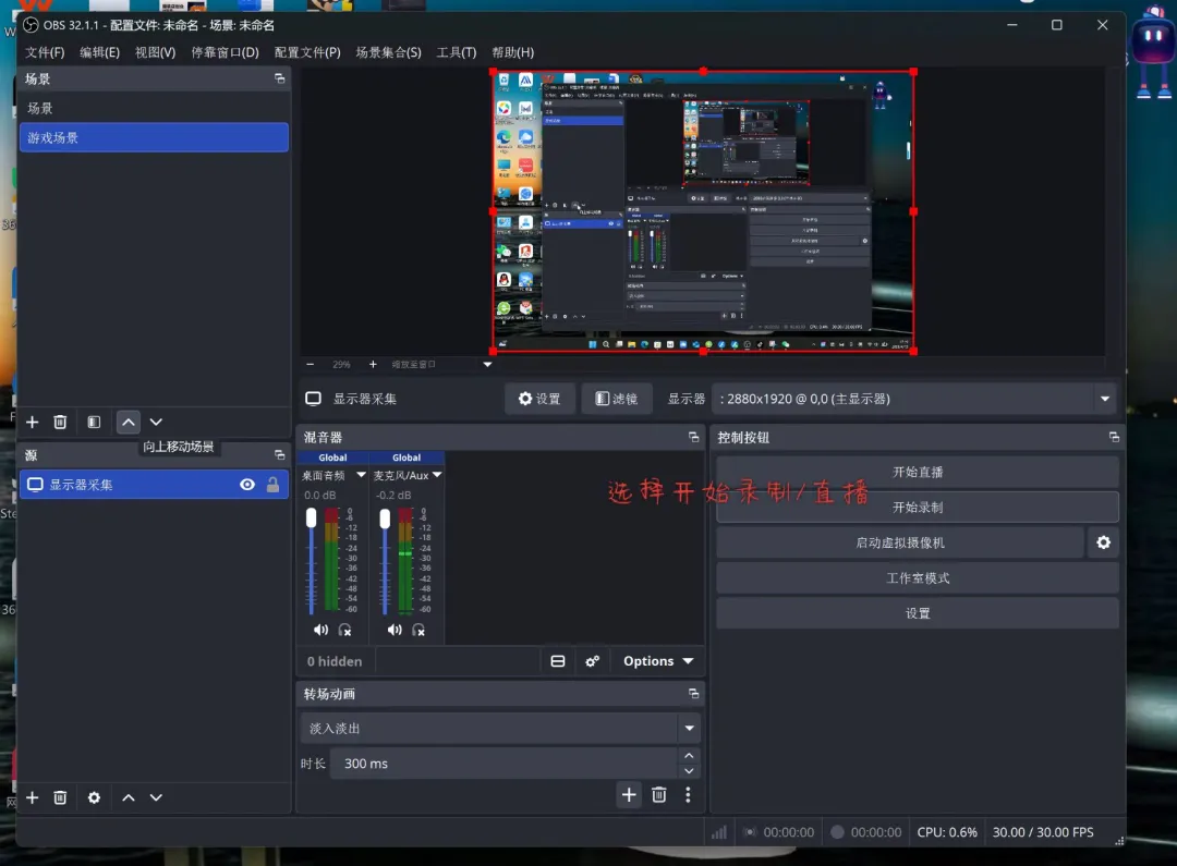 就从「新建场景」+「屏幕捕获」开始