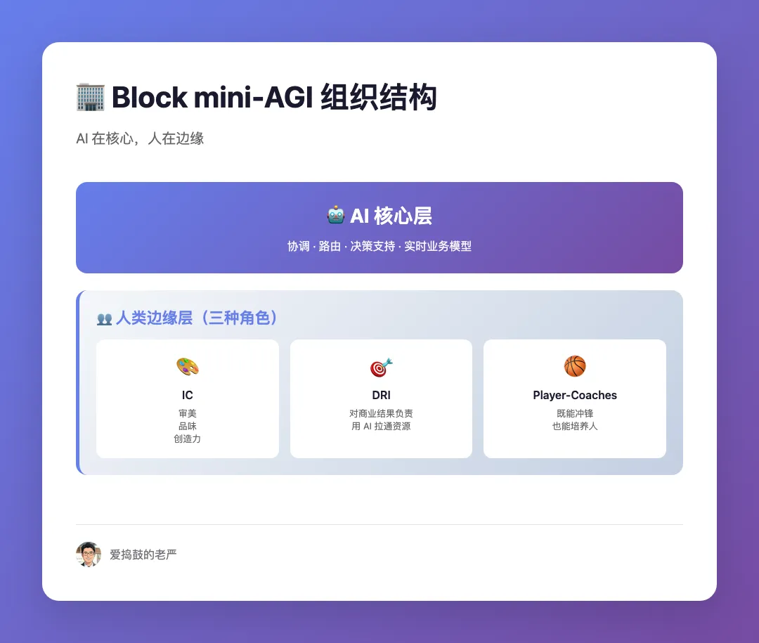 核心就一句话:把公司打造成 mini-AGI,AI 在核心,人在边缘。
