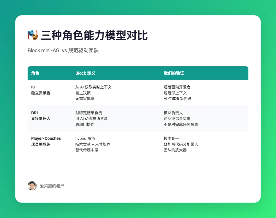 • IC 的核心能力确实是审美和判断力:规范写得再好,也有需要人做判断的地方 • DRI 确实要对商业结果负责:不是对"完成任务"负责,是对"解决问题"负责 • Player-Coaches 确实最难培养:既能写代码又能带人,这种人是团队的放大器