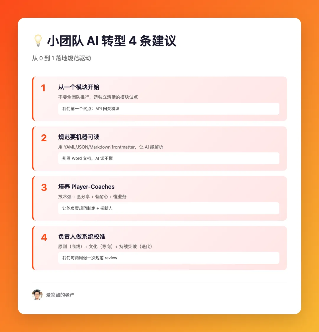 如果你也想试试规范驱动,我给你 4 条建议: