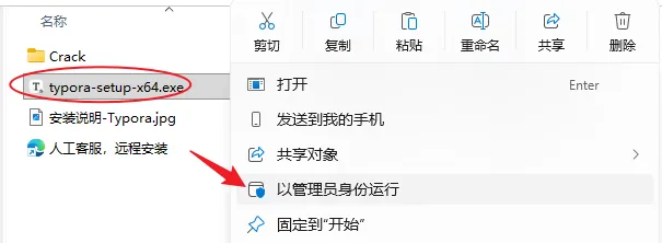 3.右键以管理员身份运行【typora-setup-x64.exe】安装程序。