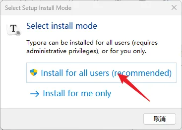4.点击【Install for all users (recommended)】。