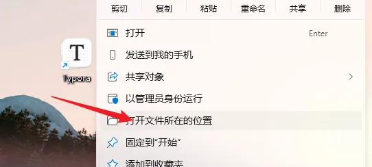 12.鼠标右击桌面【Typora】图标选择【打开文件所在的位置】。