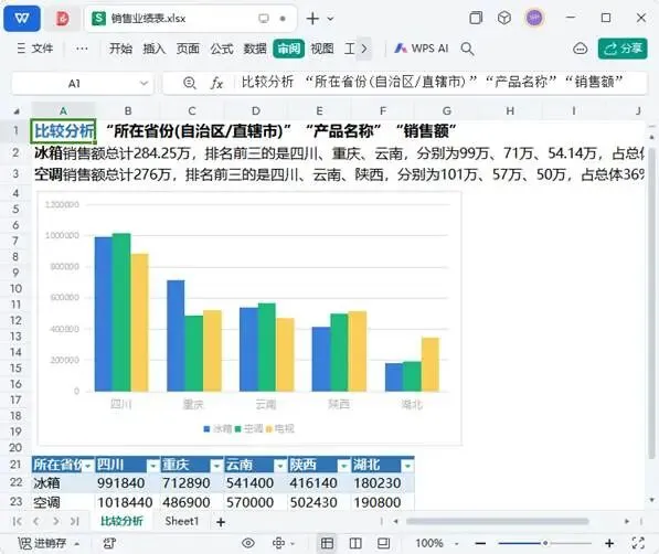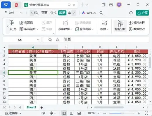 除了可以使用数据透视表分析表格数据外,使用智能分析工具,快速生成图表,并得到分析结果,操作方法如下。