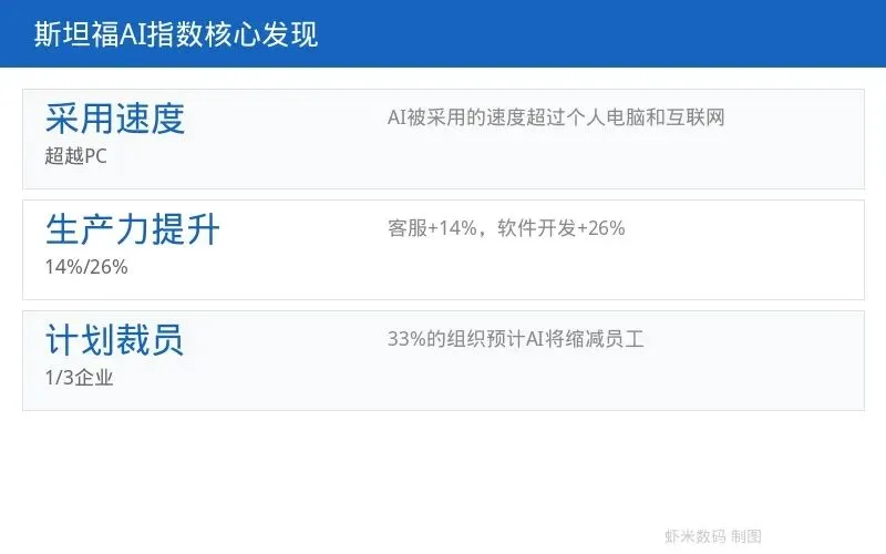 斯坦福报告同时指出,"总体而言,现在要理解AI对经济的更大影响还为时过早。"这种审慎的措辞本身就很说明问题——一份来自全球顶尖AI研究机构的报告,在拥有大量数据的情况下仍然无法确定AI对就业的净影响是正面还是负面。不确定性本身就是最大的焦虑来源。