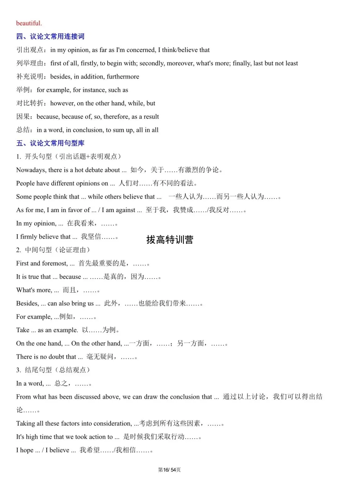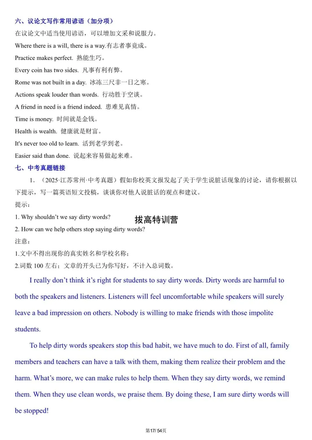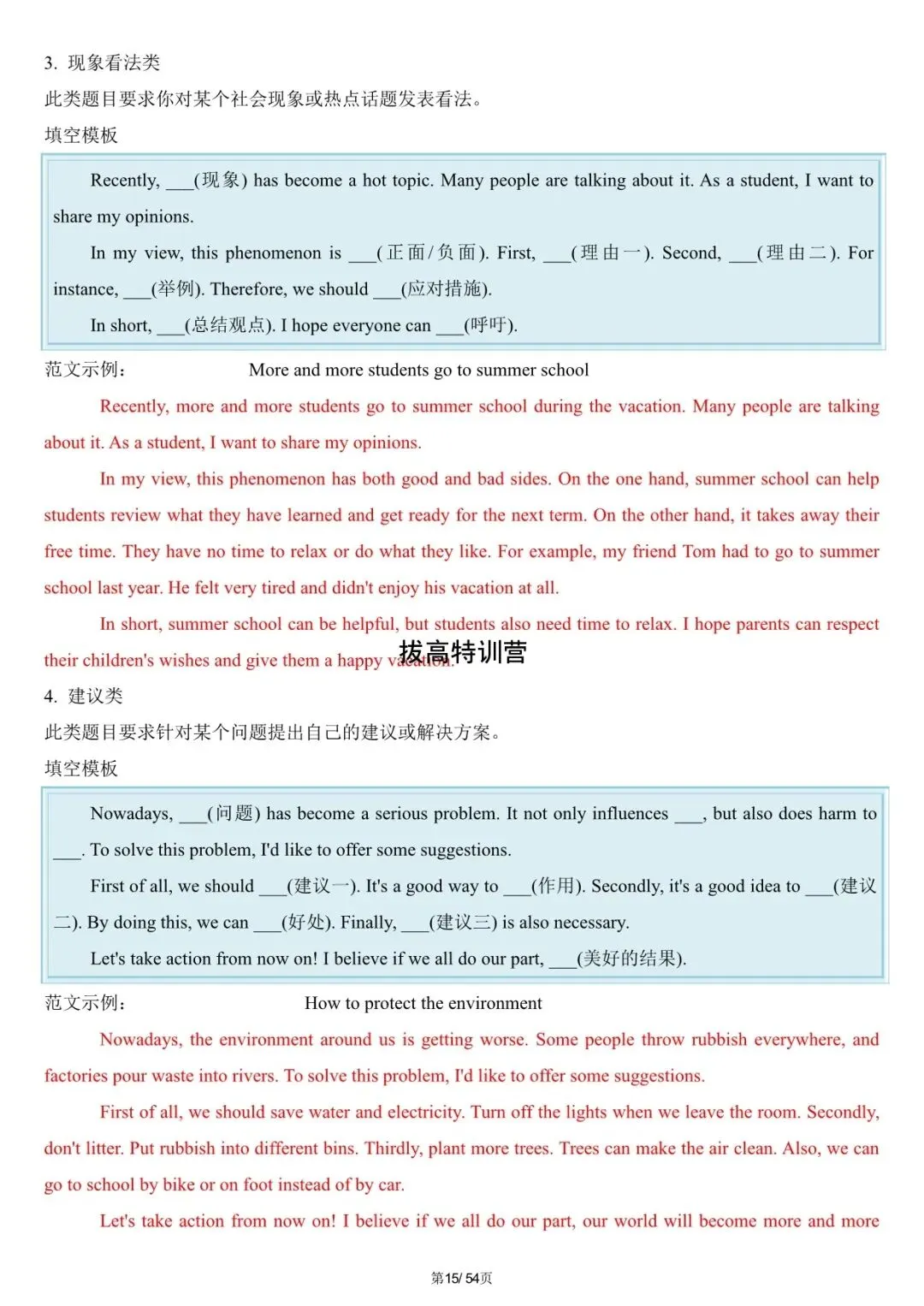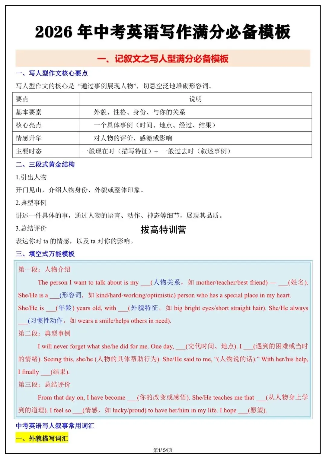中考英语|2026年写作满分必备模板,中考英语必背,电子版可下载打印!