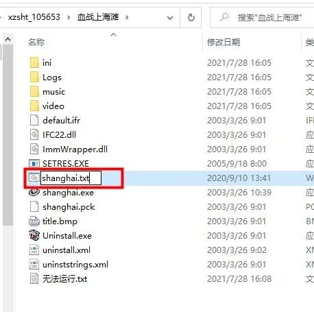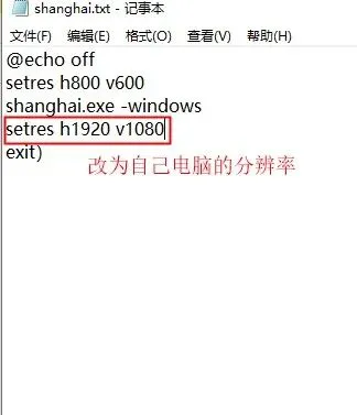 2、如果不是此分辨率,可以将shanghai.bat改名为shanghai.txt并打开。