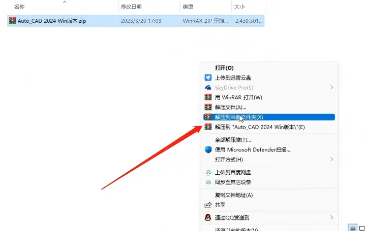 第一步:下载"Auto CAD 2027 Win 安装包”并解压。