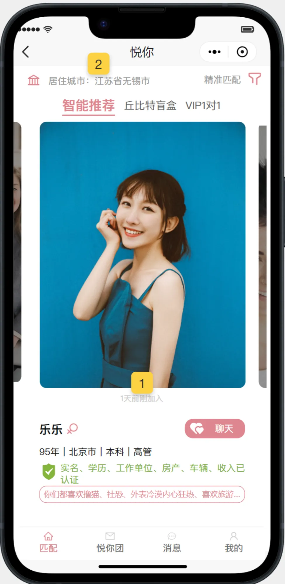 算法考虑:地理位置、活跃度、资料完整度、认证等级