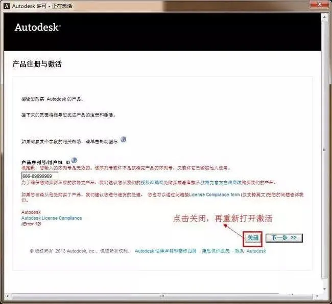 11.出现产品注册与激活提示(提示窗口可能与教程不一样),点击关闭或右上角X关闭。