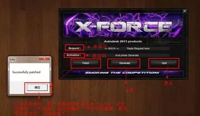 16.将软件窗口“申请号”复制到注册机Request框内,点击“Generate”得到激活码。