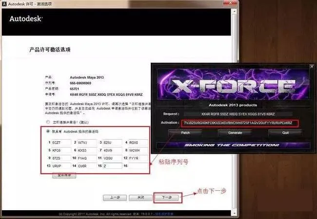 17.将得到的激活码复制到软件的激活码输入框内,点击下一步。