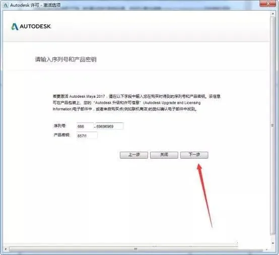 16.输入序列号:666-69696969 密钥:657i1 点击下一步。