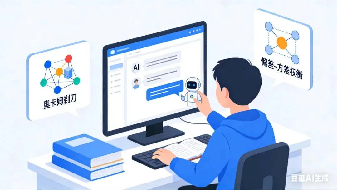 学生自己作答后,发现"偏差-方差权衡"这道题答错了。于是继续提问: