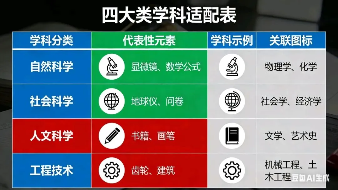 这套方法虽然具有普适性,但在应用于不同学科时,需要根据学科特点进行适当调整。我们将常见学科分为四类,并给出了具体的调整建议。